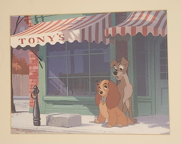 Disney Commemorative Lady and The Tramp In Front of Tony's Restaurant Framed Lithograph
