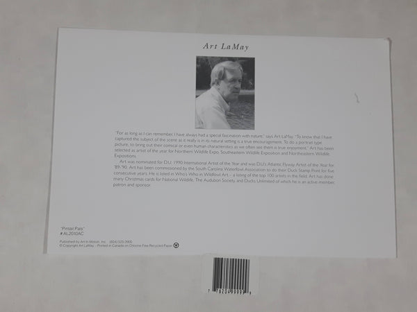 Art was nominated for D.U. 1990 International Artist of the Year and was D.U.'s Atlantic Flyaway Artist of the Year for '89-90'. Art has been commissioned by the South Carolina Waterfowl Association to do their Duck Stamp Print for five consecutive years. He is listed in Who's Who in Wildfowl Art - a listing of the top 100 artists in the field. Art has done many Christmas cards for National Wildlife, The Audubon Society, and Ducks Unlimited of which he is an active member, patron and sponsor.