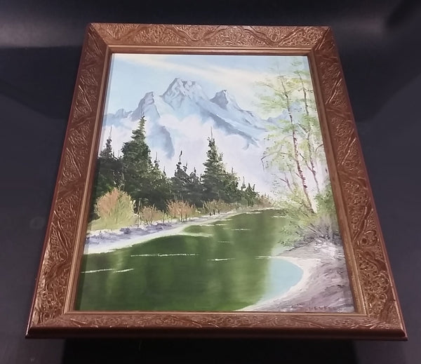 Signed Painting of a Creek or River with a Mountain View Wood Framed on 16" x 24" Canvas - By D. Neufeld