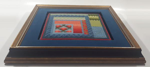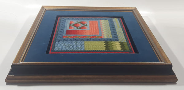 Vintage 15 1/2" x 15 1/2" Framed Cross Stitch Quilt Patterns Picture