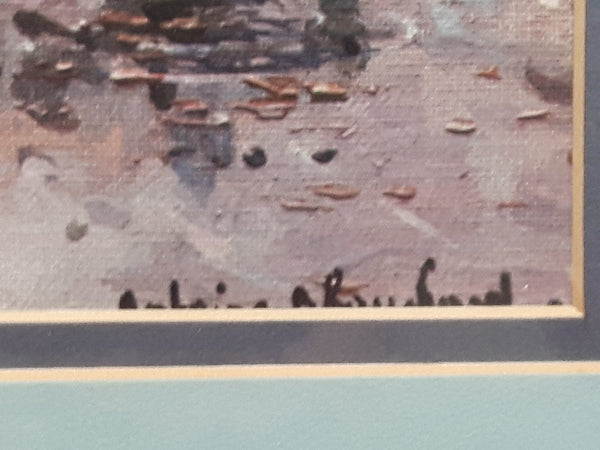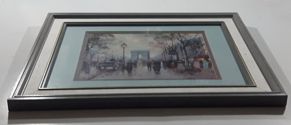 Vintage 1950s Antoine Blanchard French Artist Champs Elysees 14" x 17" Framed Painting Print Numbered 102