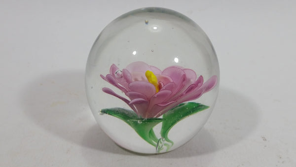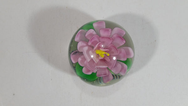Very Pretty Edinburgh Pink Flower Spherical Art Glass Paperweight
