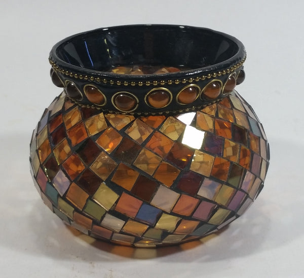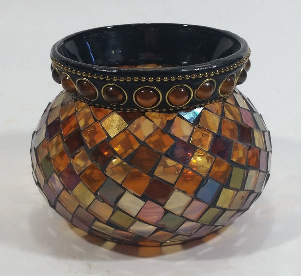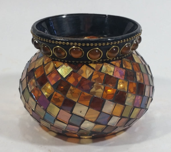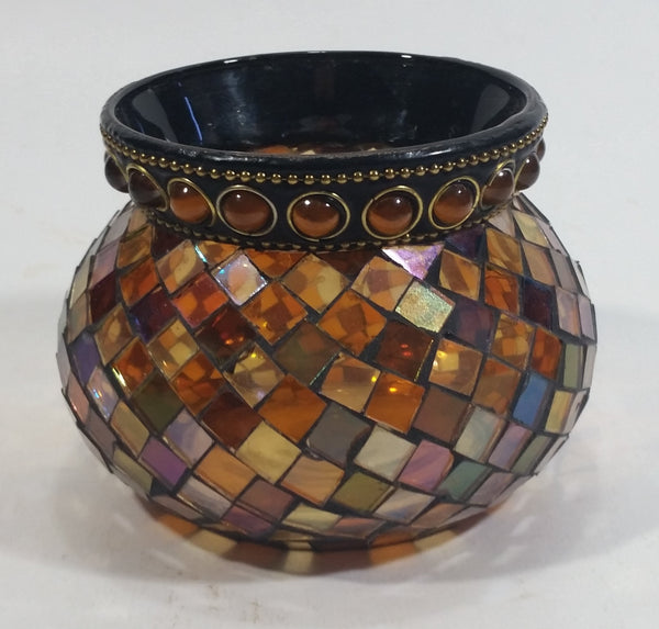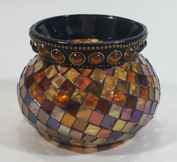 Retired Partylite Global Fusion Mosaic Orange, Pink, Purple, Amber Reflective Glass Tealight Candle Holder