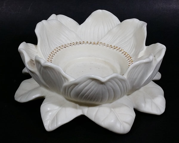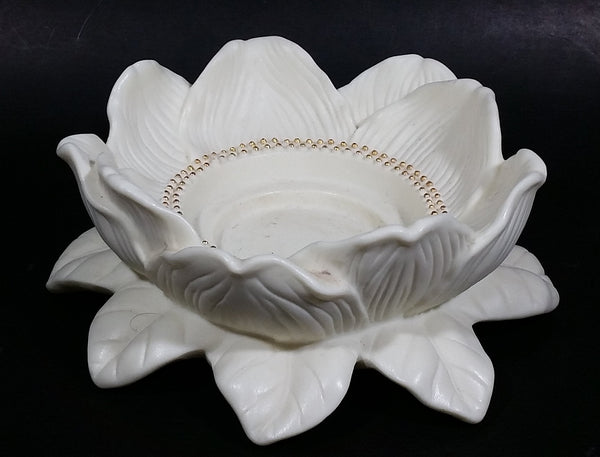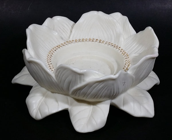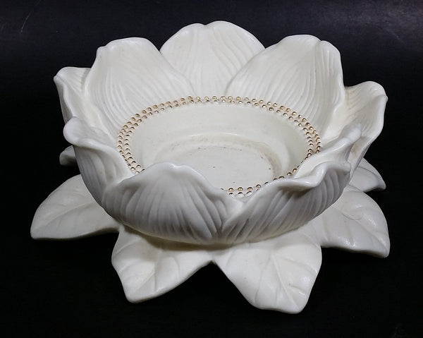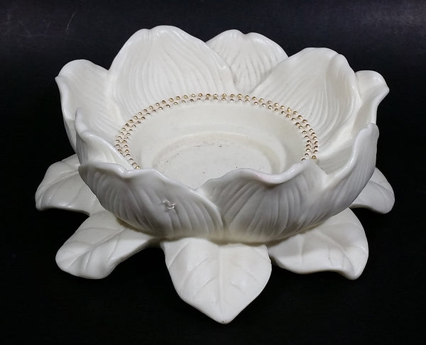 Retired Partylite Porcelain Bisque Magnolia Lotus Flower Blossom Candle Holder