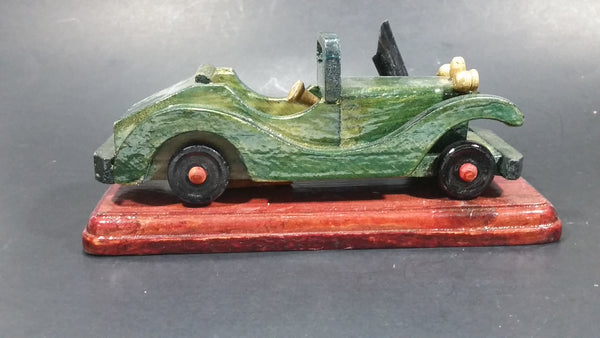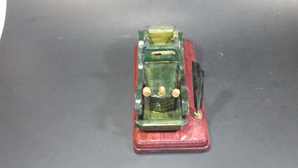 Vintage Wooden Dark Green Antique Car Pen Holder on Wood Base People's Republic of China