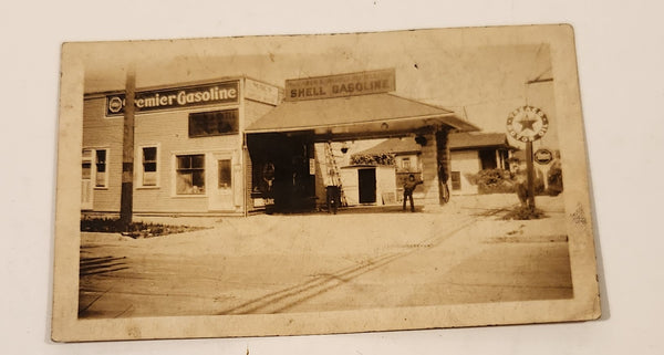 Antique MacLaren's Highland Station Mac's Shell Gasoline Premier Gasoline Texaco Motor Oil Black and White Photo Card