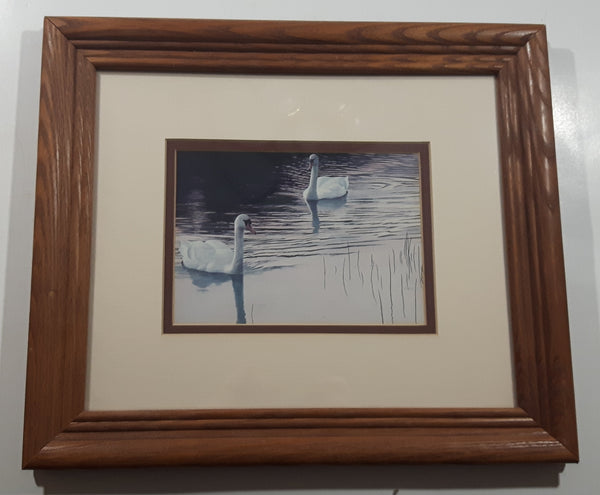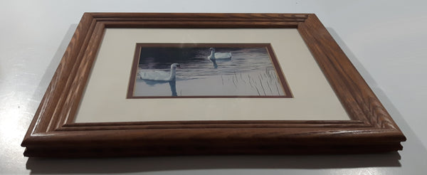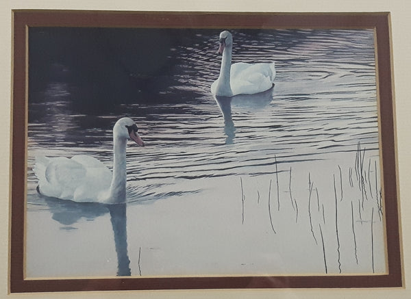 Vintage Robert Bateman Evening Idyll White Swans 12 3/8" x 14 3/8" Framed Painting Print