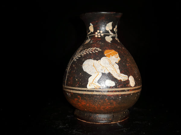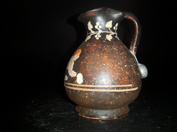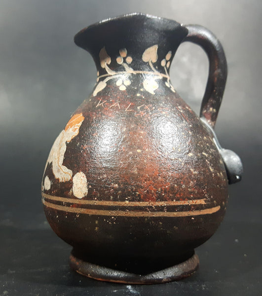 1970s Small Pottery Jug Handmade, Handpainted, Numbered and Signed on bottom by famous museum copy artist George Lioulias of Lioulias Museum Replicas in Athen's Greece