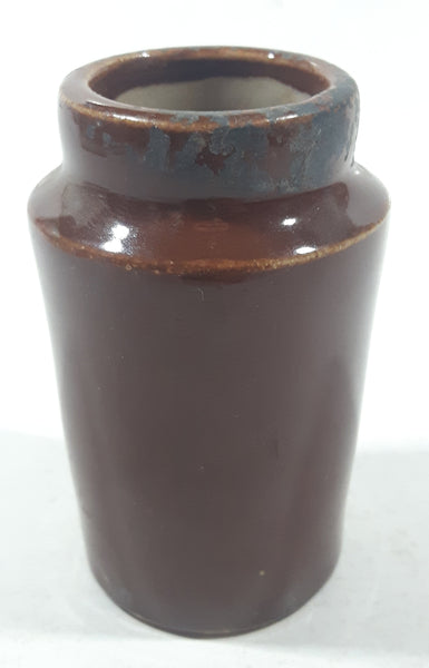 Antique 1800s Brown Glaze 3 1/8" Tall Heavy Stoneware Jar Bottle