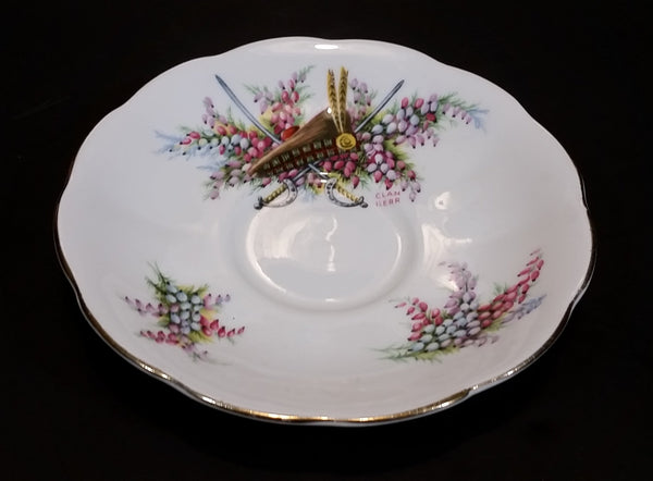 1949-1959 Queen Anne Fine Bone China "Clan Kerr" Scottish Swords & Floral Teacup Saucer