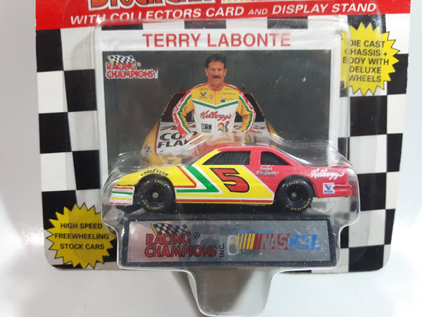 1994 Edition Racing Champions NASCAR Stock Car #5 Terry Labonte Kellogg's Chevrolet Monte Carlo White Red Green Yellow Die Cast Toy Race Car Vehicle with Collector Card and Display Stand - New in Package Sealed