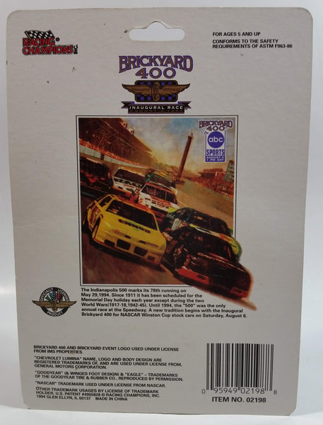 1994 Racing Champions Brickyard 400 Indianapolis Motor Speedway Inaugural Race NASCAR #94 Chevy Lumina White Die Cast Toy Race Car Vehicle with Trading Card and Display Stand - New in Package Sealed