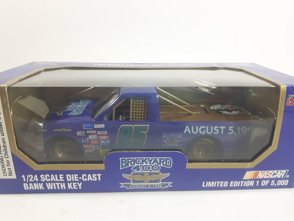 1995 Racing Champions Limited Edition 1 of 5,000 NASCAR #95 Brickyard 400 August 5, 1995 Purple 1/24 Scale Die Cast Coin Bank with Key New in Box