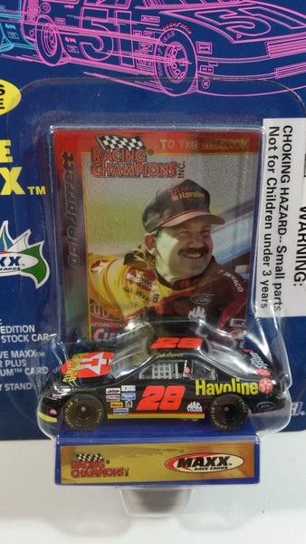 1995 Racing Champions Series Three To The Maxx NASCAR #28 Dale Jarrett Havoline Texaco Ford Taurus Black Die Cast Toy Race Car Vehicle with Maxx Trading Card and Display Stand - New in Package Sealed