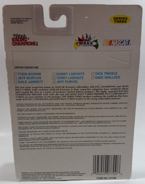1995 Racing Champions Series Three To The Maxx NASCAR #28 Dale Jarrett Havoline Texaco Ford Taurus Black Die Cast Toy Race Car Vehicle with Maxx Trading Card and Display Stand - New in Package Sealed