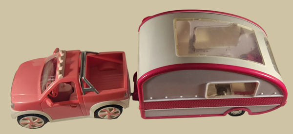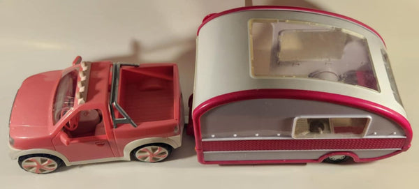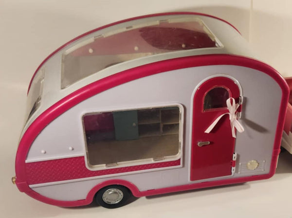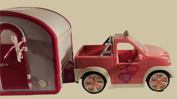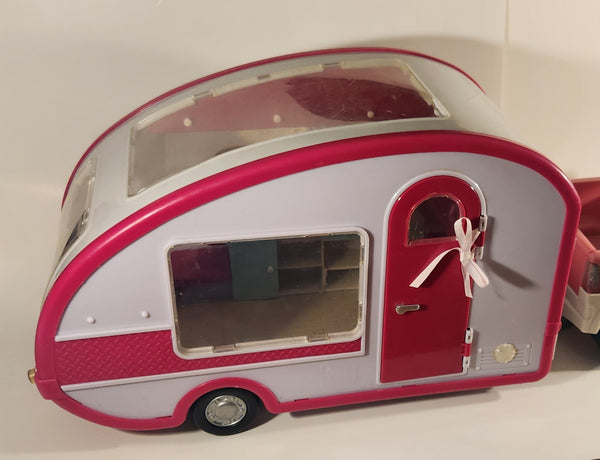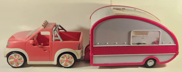 Battat Lori Our Generation Pink FM Radio Truck and Camper Trailer Plastic Toy Doll Vehicles