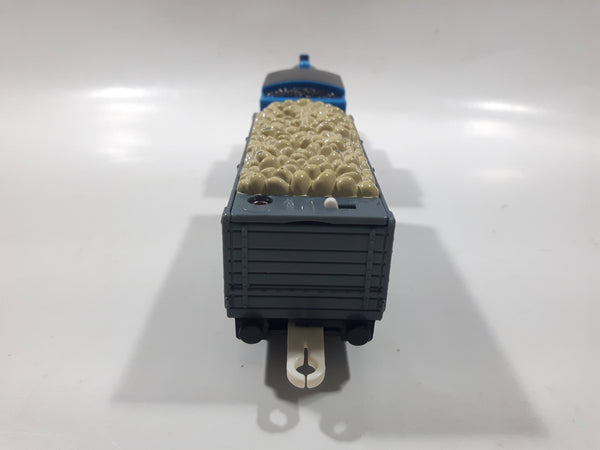2009 Mattel Thomas & Friends Trackmaster Blue #1 Thomas The Tank Engine Pulling Grey Gravel Car 9" Long Plastic Toy Vehicle R9626