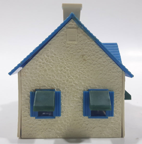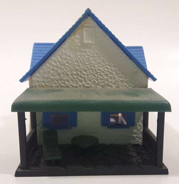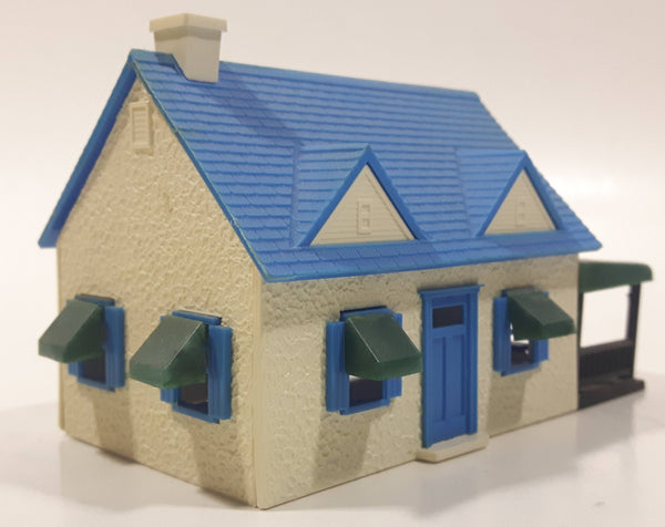 Blue and White Plastic Railroad Model House with Porch Building