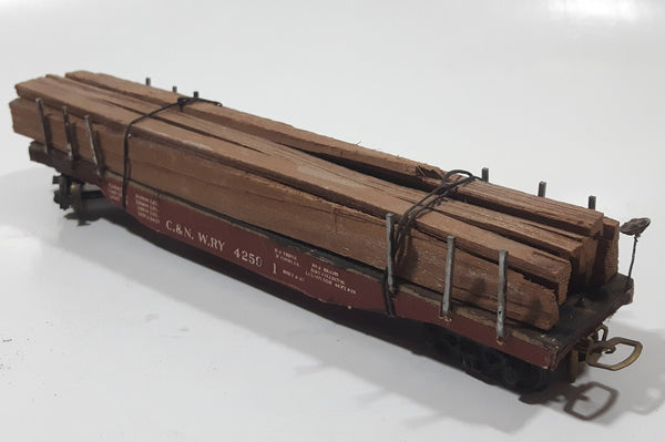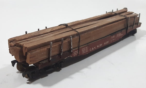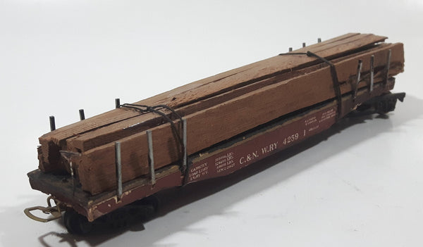 HO Scale C.&N. W.RY 4259 Flat Deck Car Brown Toy Train Car Vehicle with Wood Load