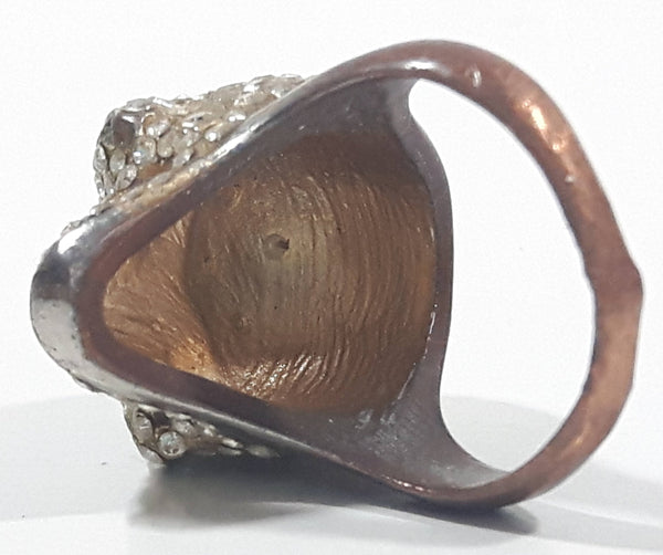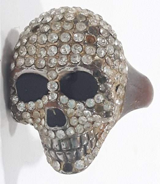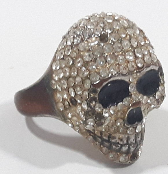 Clear Sparkling Rhinestone Skull Shaped Metal Ring