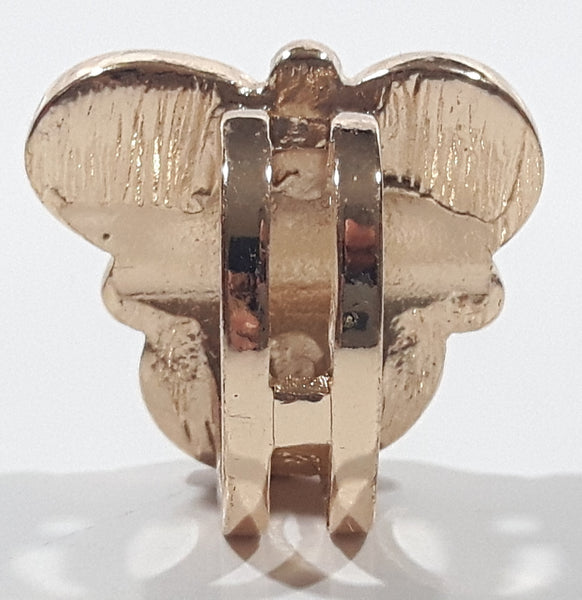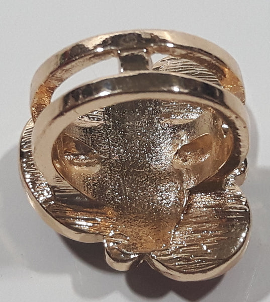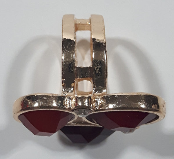 Costume Jewelry Triple Ruby Red Plastic and Clear Glass Gemstones Gold Tone Metal Ring