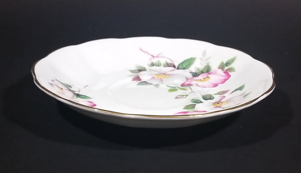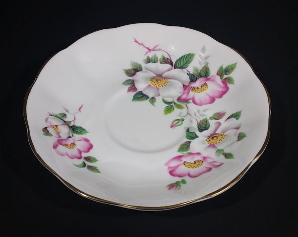 1960s Royal Albert Bone China England Pink and White Wild Rose Flower Pattern with Gold Trim Teacup Saucer