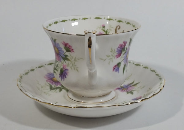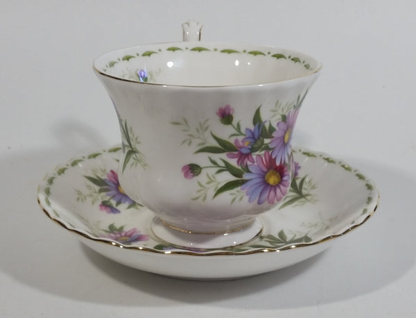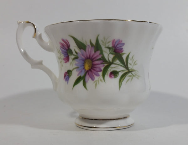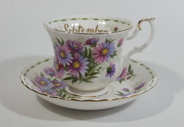 Vintage 1970s Royal Albert Flower of the Month Series September Michaelmas Daisy Bone China Tea Cup & Saucer Set
