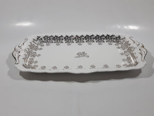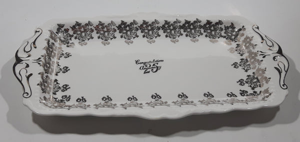Vintage Royal Albert Congratulations 25th Anniversary Silver Overlay 6 3/4" x 11 3/4" Bone China Dish Made in England