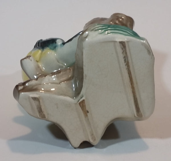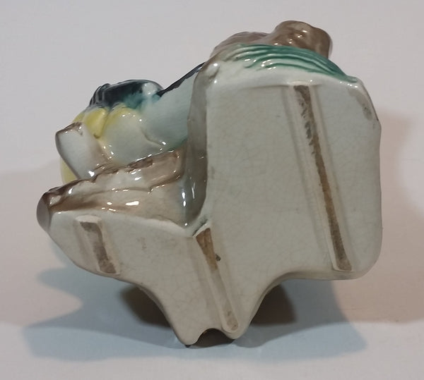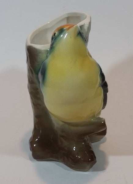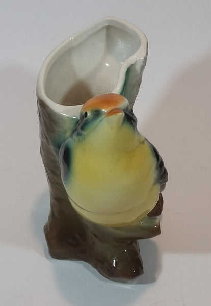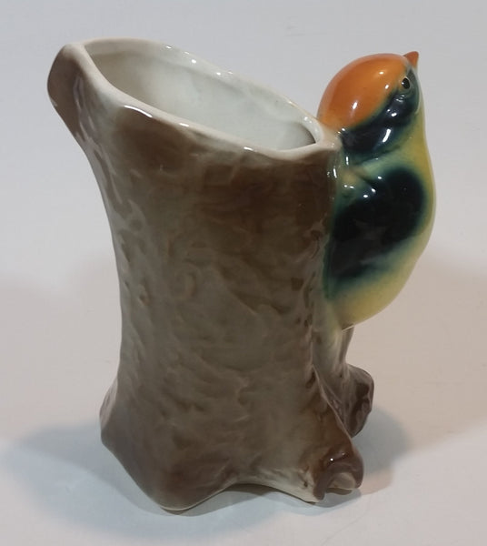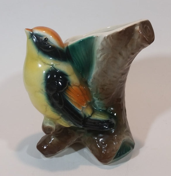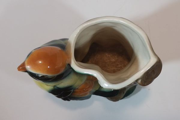 1950s Royal Copley Western Tanager or Warbler Bird on Tree Stump Ceramic Porcelain Planter