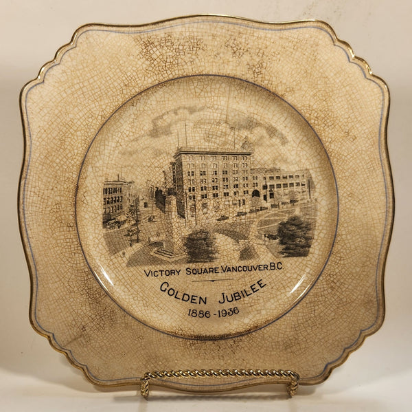Rare Antique Royal Winton Grimwades 1886-1936 Victory Square Vancouver Canada Golden Jubilee Ceramic Porcelain Souvenir Dish