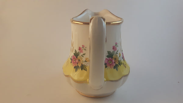 Vintage 1950s Sadler Creamer Gold Trimmed, Yellow and Pink Daisy Yellow Ringed Numbered