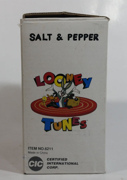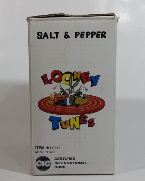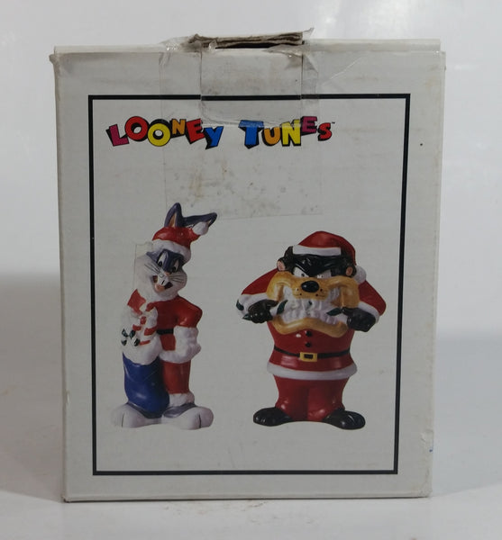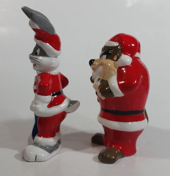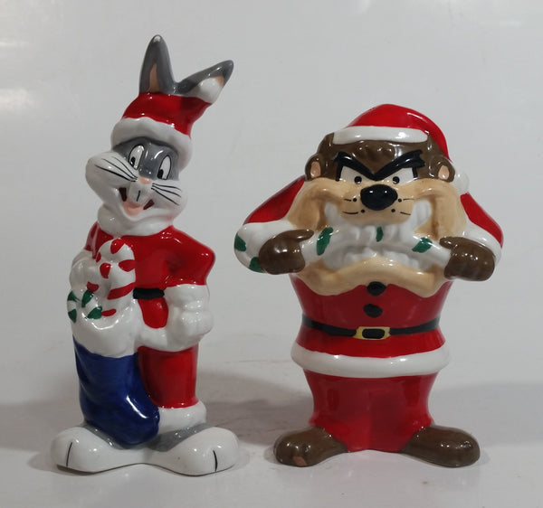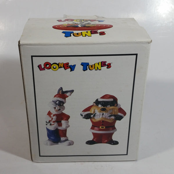 1993 Warner Bros. Looney Tunes Bugs Bunny and Taz Cartoon Characters Christmas Themed 5" Tall Ceramic Salt & Pepper Shakers In Box