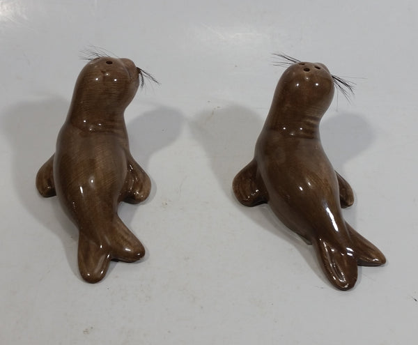 Brown Seal Shaped Ceramic Salt and Pepper Shakers