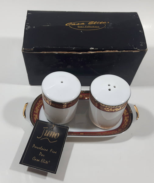 Casa Elite Home Collections Juno Pattern Fine Porcelain Salt and Pepper Shakers With Tray with Box
