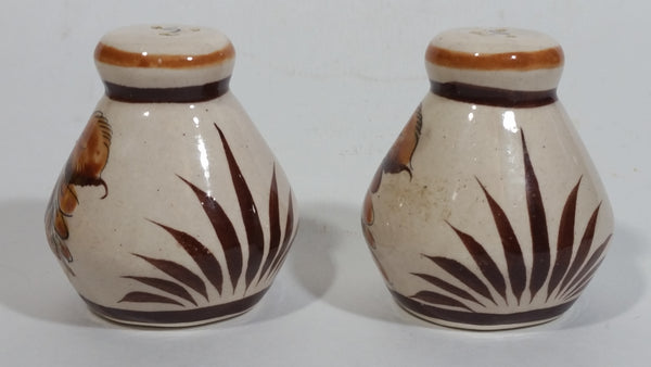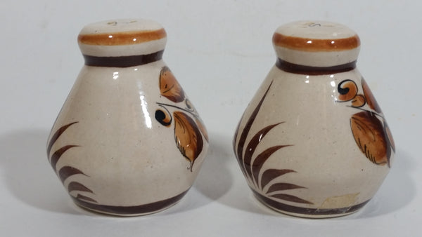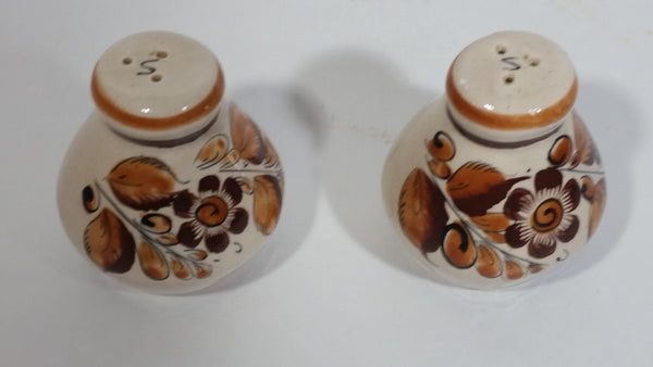 Cat Mexico Cream and Brown Floral Pattern Salt & Pepper (Both Salt) Pottery Shaker Set