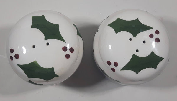 Christmas Holly Themed 3 1/2" Tall Ceramic Salt and Pepper Shaker Set