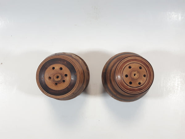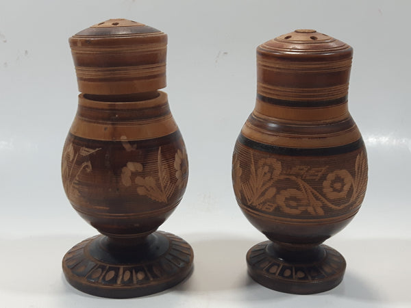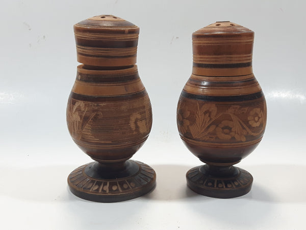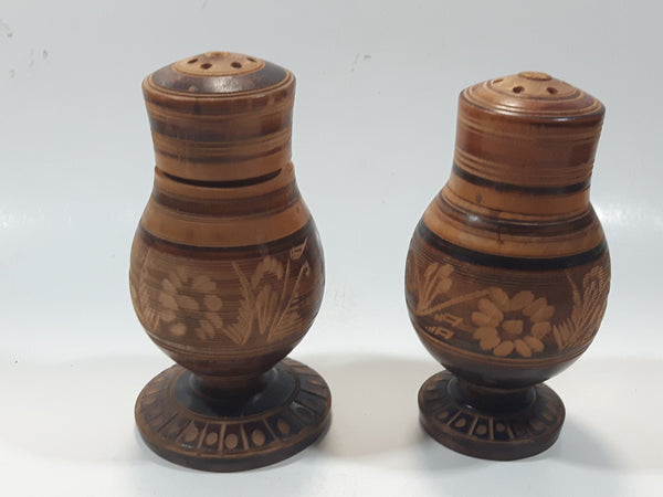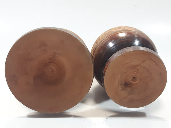 Mexican Carved Etched Wood 5" Tall Salt and Pepper Shakers