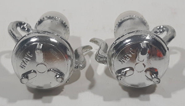 Vintage Astrodome Teapot Shaped Silver Metal 1 3/4" Tall Salt and Pepper Shaker Set with Tray