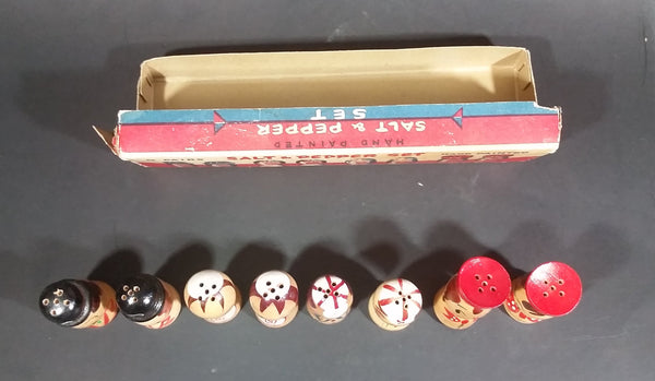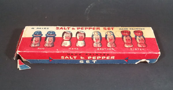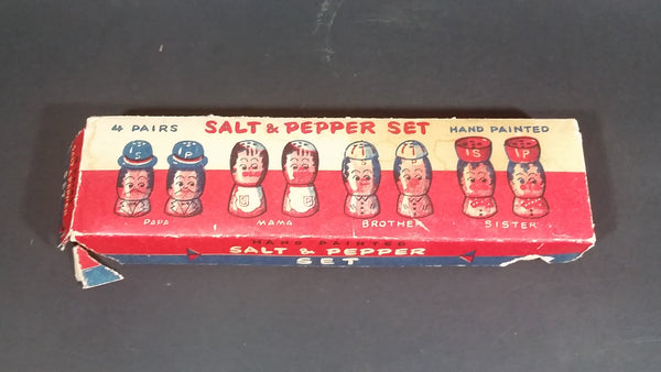 Vintage Family Papa Mama Brother Sister Handpainted Wood Salt & Pepper Shakers In Box