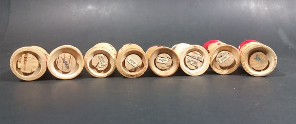 This set features Wooden Salt and Pepper Shakers for each member of the family. They have cork plugs and are stamped Japan on the bottom.