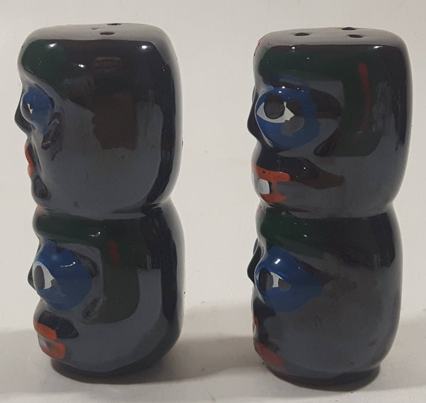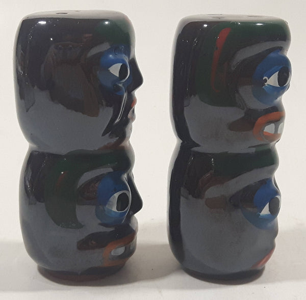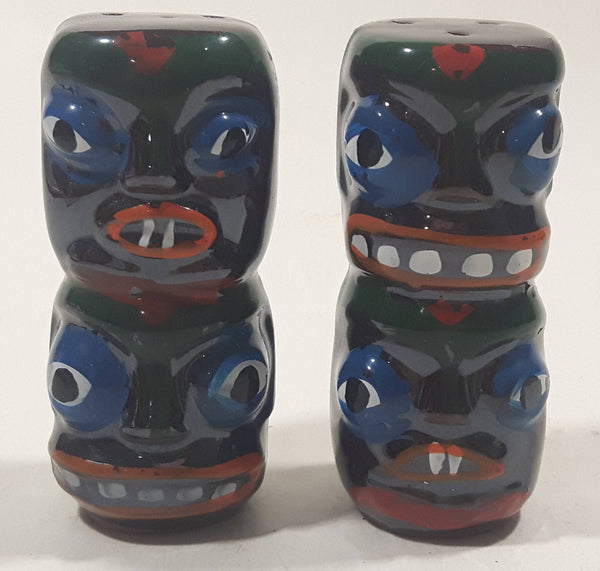 Vintage Hand Painted Totem Pole Shaped Ceramic 3" Tall Salt and Pepper Shaker Set Made in Japan