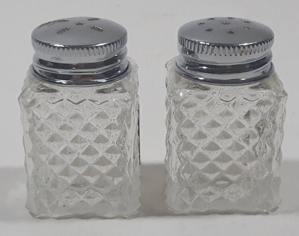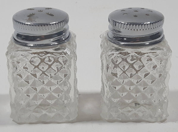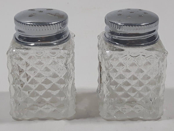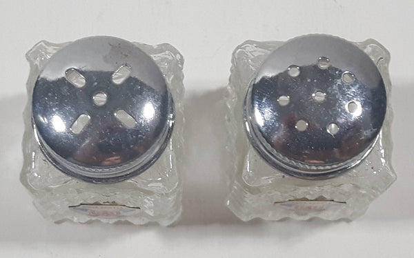 Vintage Nova Scotia Metal Top Clear Glass Small 1 3/4" Tall Salt and Pepper Shaker Set
