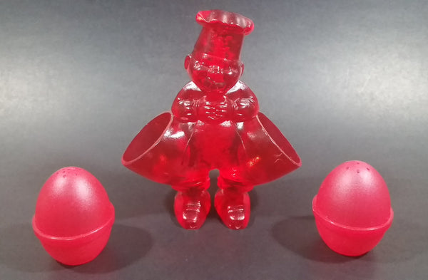 Vintage Red Plastic Chef Salt and Pepper Shaker Holder with Shaker in His Pockets
