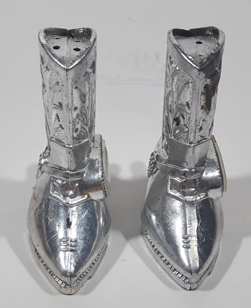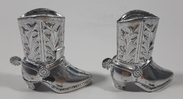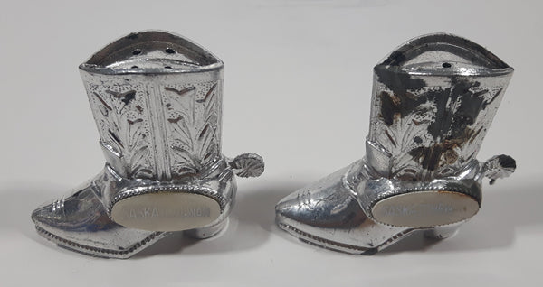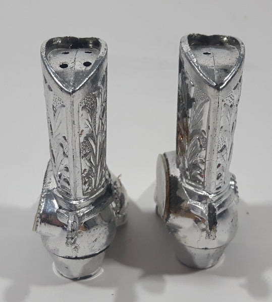 Vintage Saskatchewan Cowboy Boot Shaped 2" Tall Metal Salt and Pepper Shaker Set