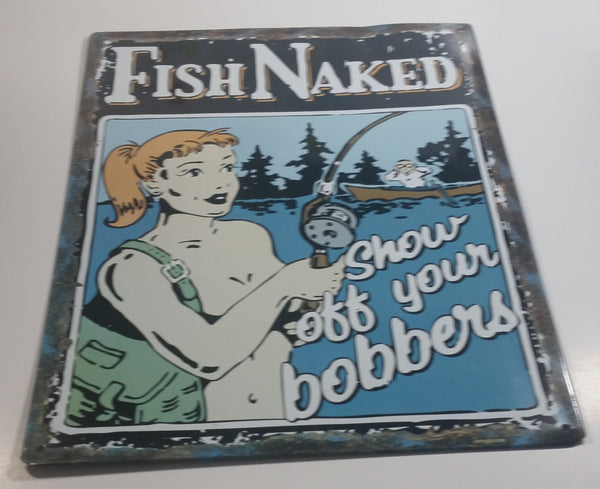 Fish Naked Show Off Your Bobbers 13" x 17" Tin Metal Sign Rustic Cabin Lake Fishing Hunting Decor