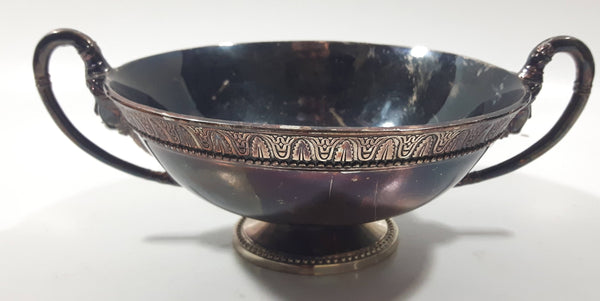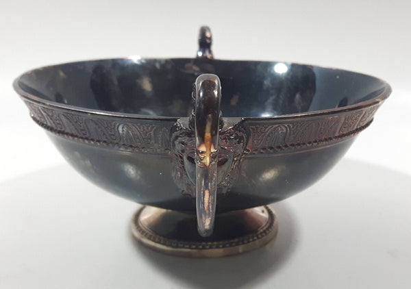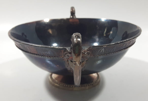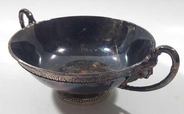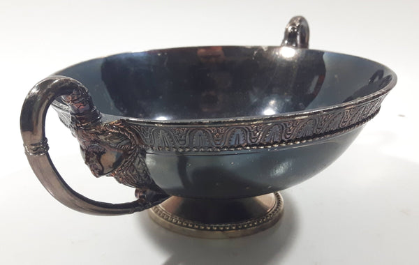 Vintage Silver Tone Metal Figural Face Head Handles 5" Diameter Bowl Dish