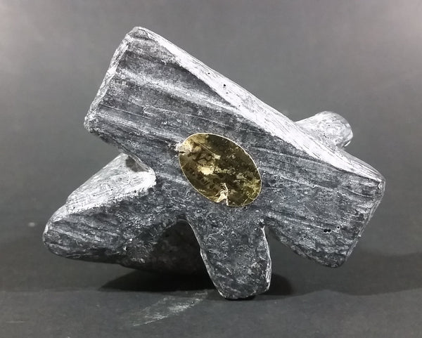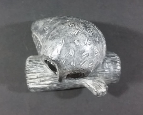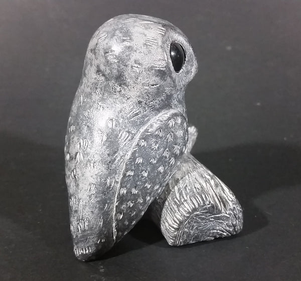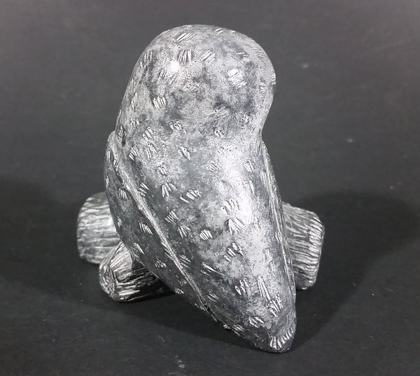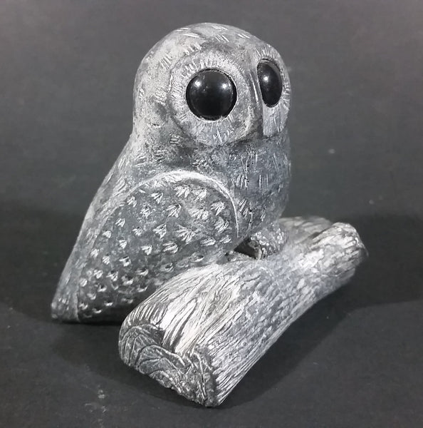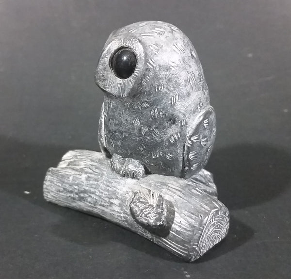 A Wolf Original Barn Owl On A Log Soapstone Carved Sculpture Ornament w/ Original Sticker