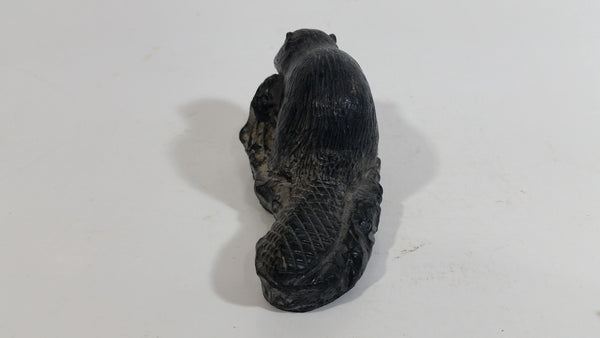 Beaver Soapstone Carved Sculpture Ornament w/ Original Sticker