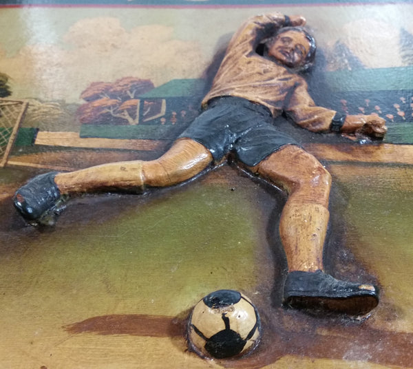 Soccer Football Tournament 3D Wood Folk Art Carving Pub Games Room Hanging Sports Collectible