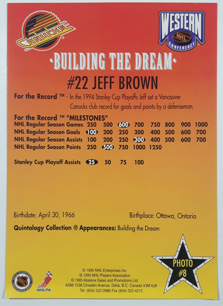 1995 NHL Enterprises Quintology Collection Building The Dream #22 NHL Jeff Brown Vancouver Canucks Jumbo 5" x 7" Photo Hockey Card